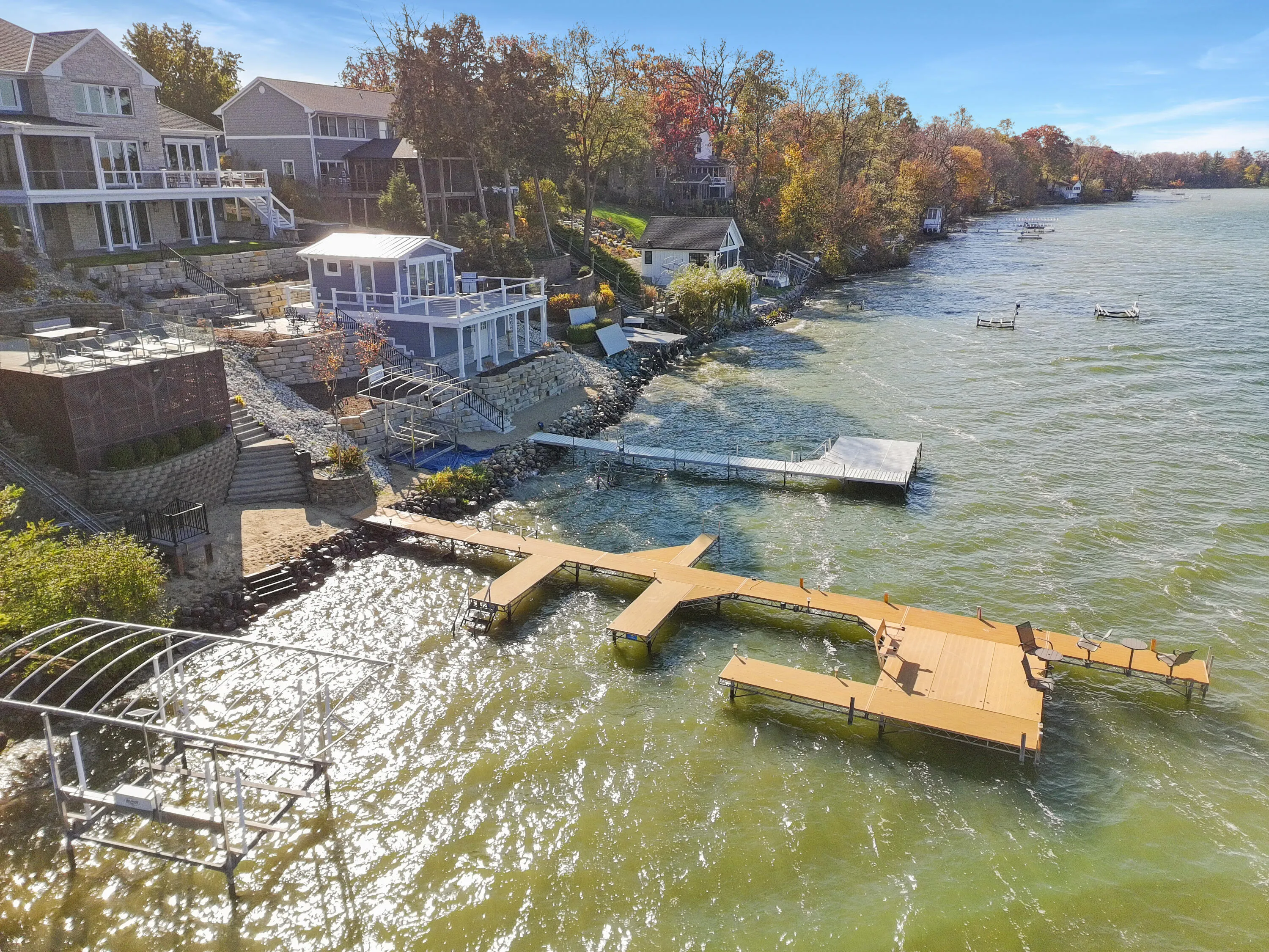 Magnificent 7BD/7.5BA lakefront on Lake Elizabeth loaded with features! Guest quarters w/ full kitchen and bath, finished, walk-out basement, outdoor kitchen, gas firepit, and screened lakeside porch. A tram takes you to a large lakeside deck and sandy beach. Lower level is made for entertaining w/ full kitchen, bar, walk-in cooler, large TV area, 3 bedrooms, and 2 full baths, including steam shower. Washer/dryer on all 3 levels, gourmet kitchen, walk-out mudroom with full bath, 2-story living room with motorized blinds, 2-story office, and main level primary suite, with steam shower. Upper level offers 3 bedrooms, including a second primary suite w/ lakeview patio, and 2 additional full baths. Heated/air-conditioned 4-car garage w/ custom cabinets, TV, and sink.