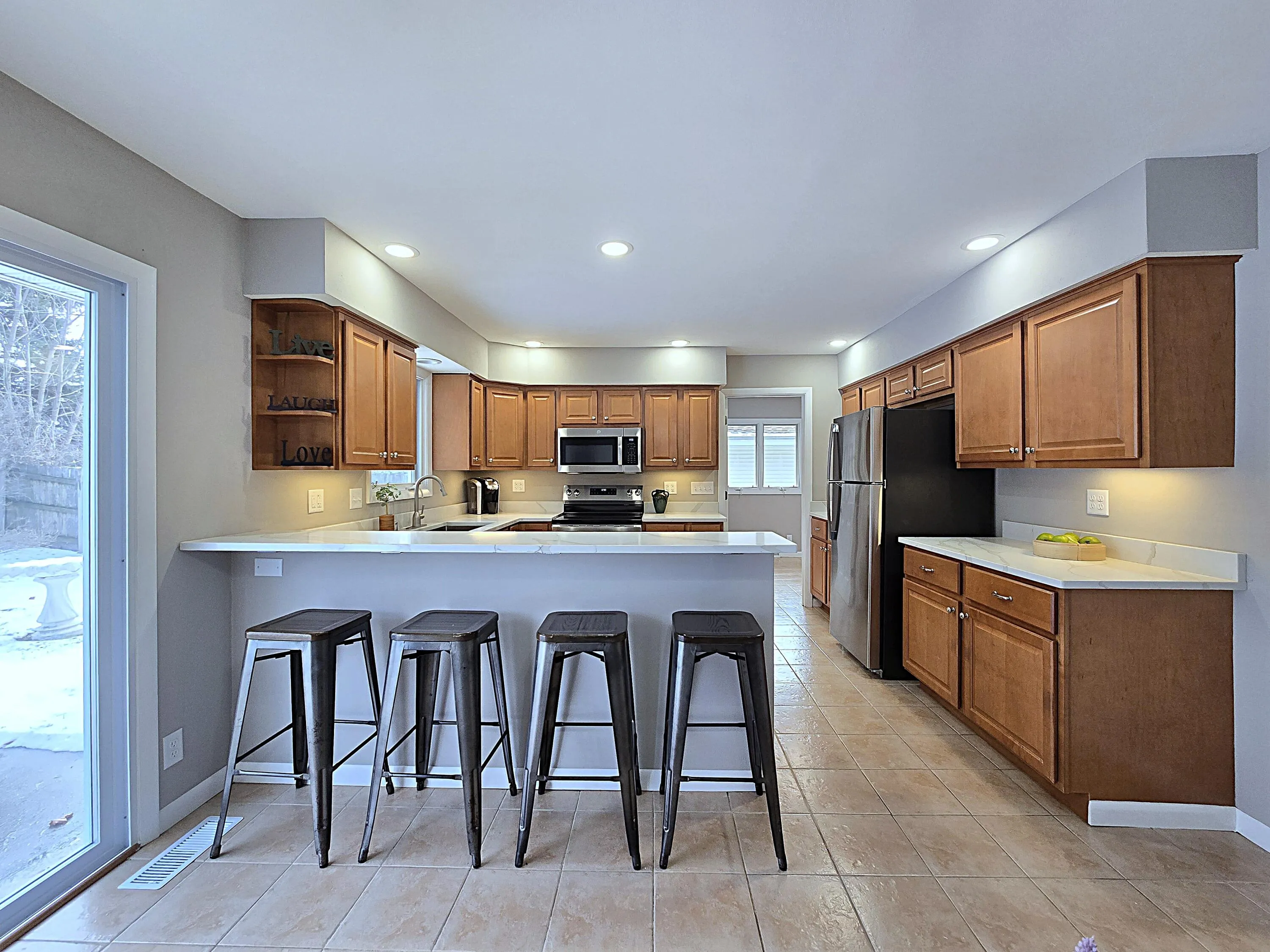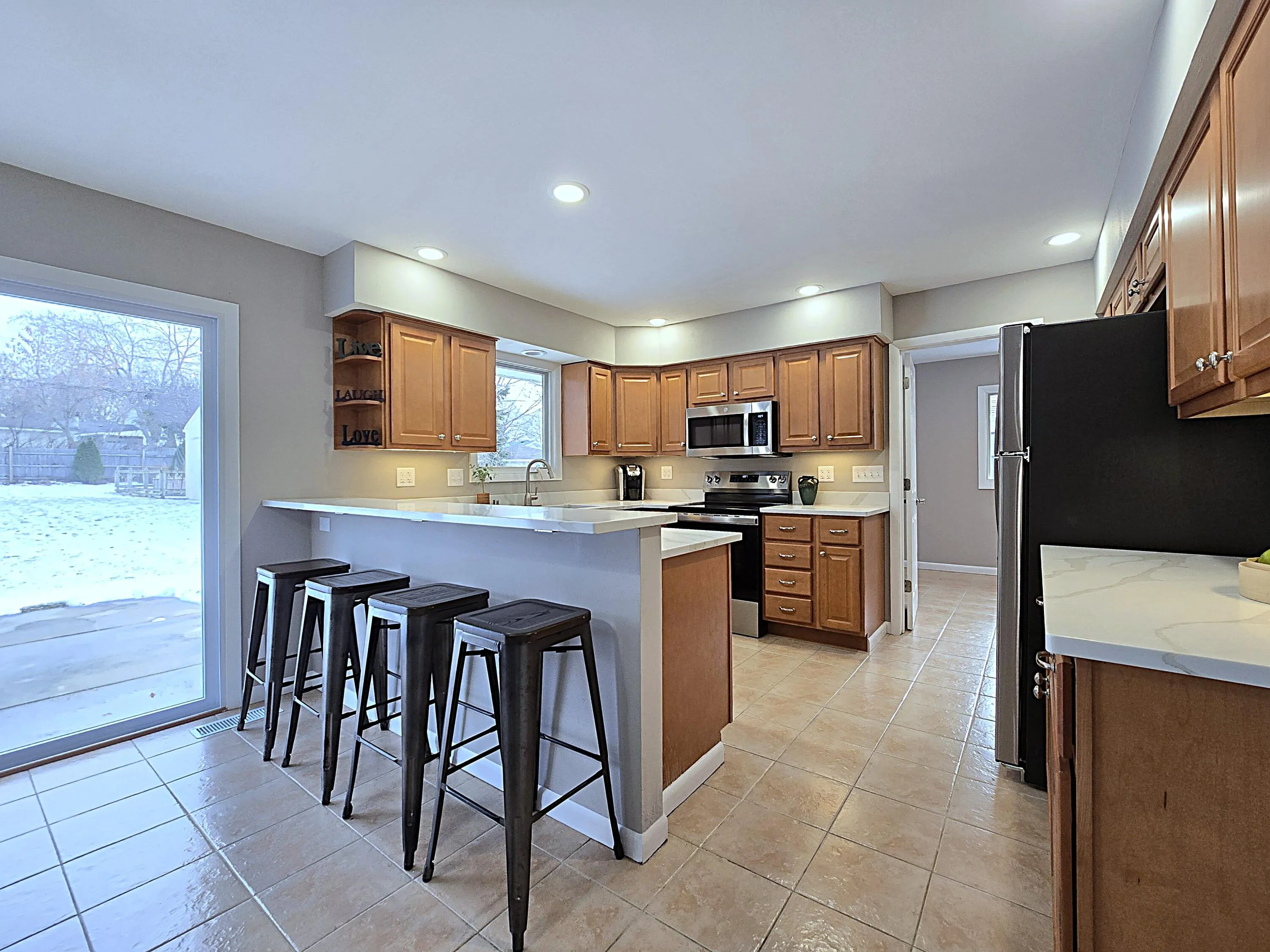 Updated and clean, this four bedroom, 2.5 bath ranch is move-in-ready and fully loaded with space and features. A refreshed kitchen boasts new quartz counters flowing over ample cabinetry, sleek new stainless steel appliances, & snack bar that leads into an ample dining area. The spacious living room w/vaulted ceiling & main floor bedrooms showcase handsome refinished HWFs. A full bath serves the main bedrooms and is complimented by a half bath off the mud room. Convenient main floor laundry in the mud room as well. Enjoy the vast newly finished basement rec room with tons of room to entertain or relax. The finished lower also includes a second full bath and a fourth bedroom with egress. Enjoy the large backyard from the patio, and put the shed to good use. Lots to like here, see today!