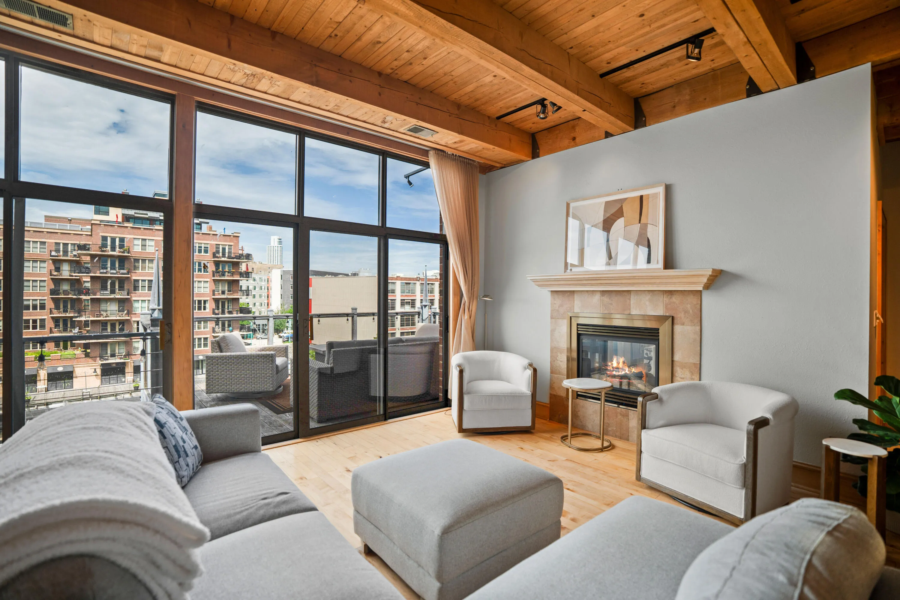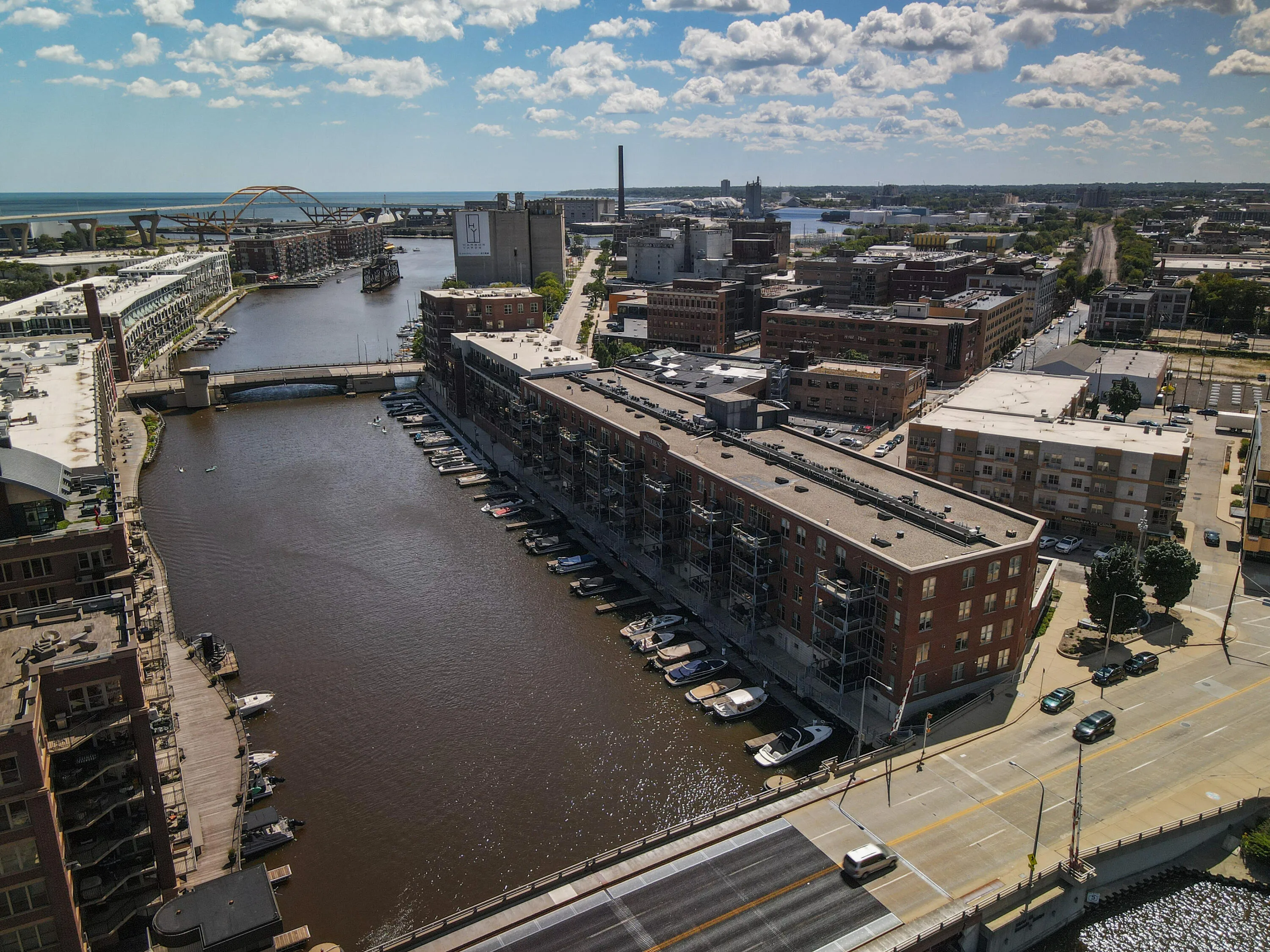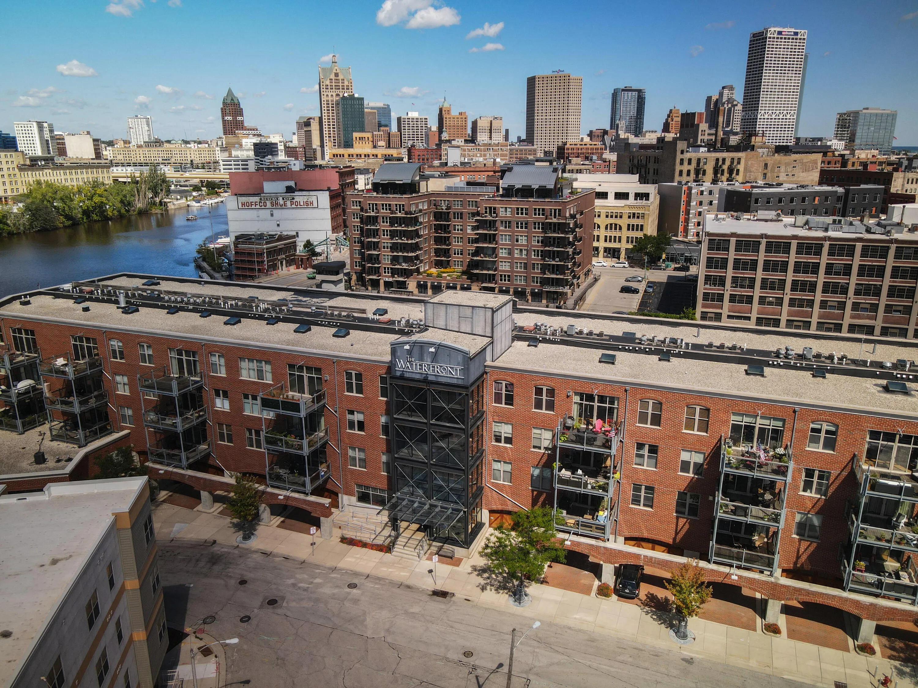 Enjoy urban living along the Milwaukee River in this updated two bedroom, two bathroom top floor unit at the Waterfront! Open floor plan boasts 10′ timber ceilings, 2-way gas fireplace, chef’s kitchen with top of the line stainless appliances, granite counters, custom cabinets and 2-tier breakfast bar and skylight. Spacious living room with doors to your oversized patio overlooking the river, great for entertaining. Primary suite with river views, features a double size walk-in closet and primary bathroom with dual vanities, whirlpool tub and tiled walk-in shower. Guest bedroom with built in bookshelves and built in desk. Full guest bathroom. Multi-purpose laundry room. One heated indoor parking space and one storage unit included. This is luxury living at its finest!