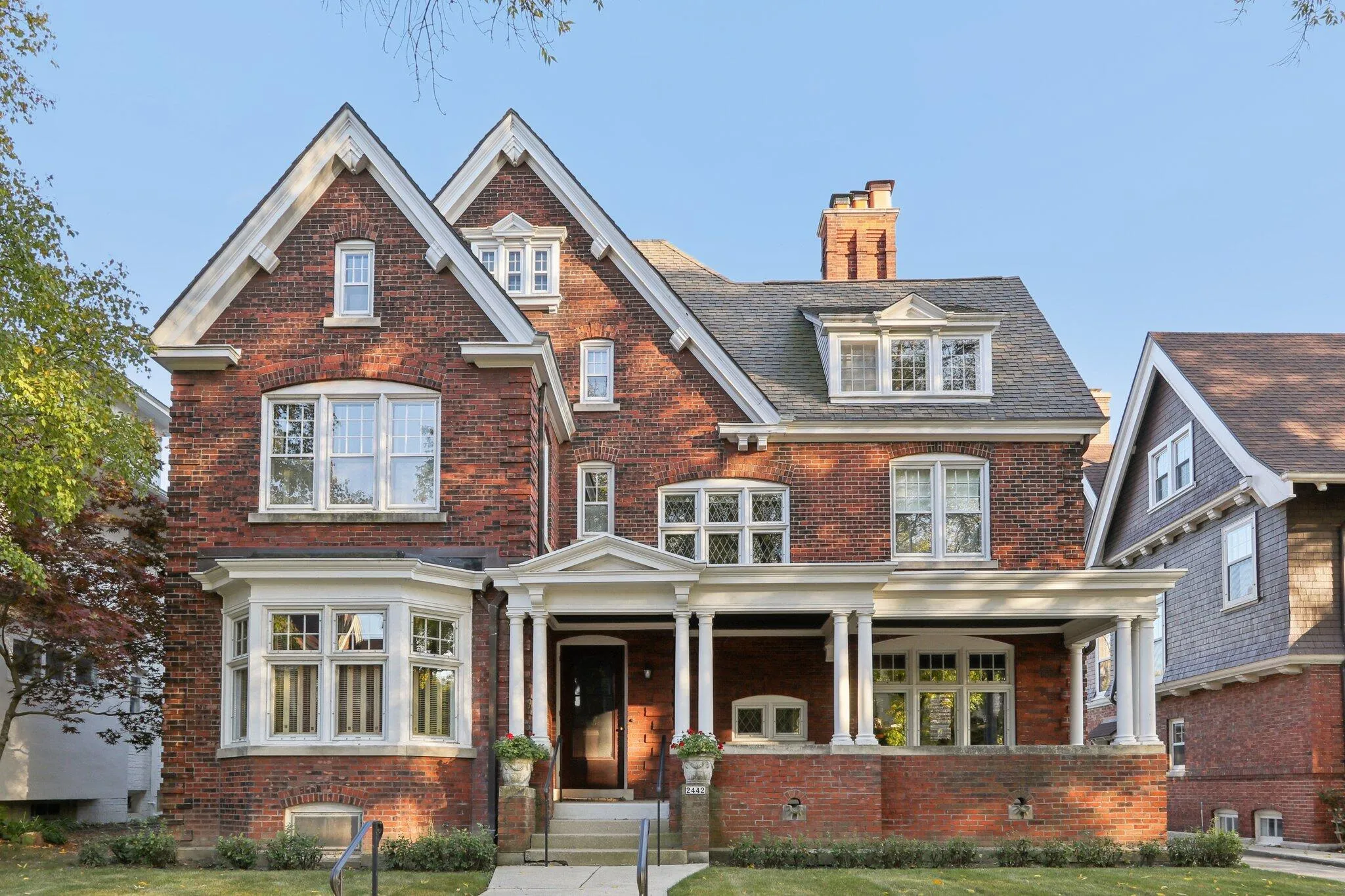 Timeless 1905 Tudor Revival combining historic craftsmanship with grand, light-filled living spaces. Stunning millwork, original fireplaces, leaded-glass windows and coffered ceilings showcase remarkable preservation throughout. The main level offers elegant formal rooms, a welcoming family room, and a spacious kitchen with abundant storage. Upstairs, generously scaled rooms continue the home’s warm character, with additional flexible spaces on the third floor. Enjoy outdoor living on the gracious front porch and a private backyard. Located in the coveted Water Tower District, close to the lakefront, parks, and beloved North and Downer Avenue shops and restaurants.