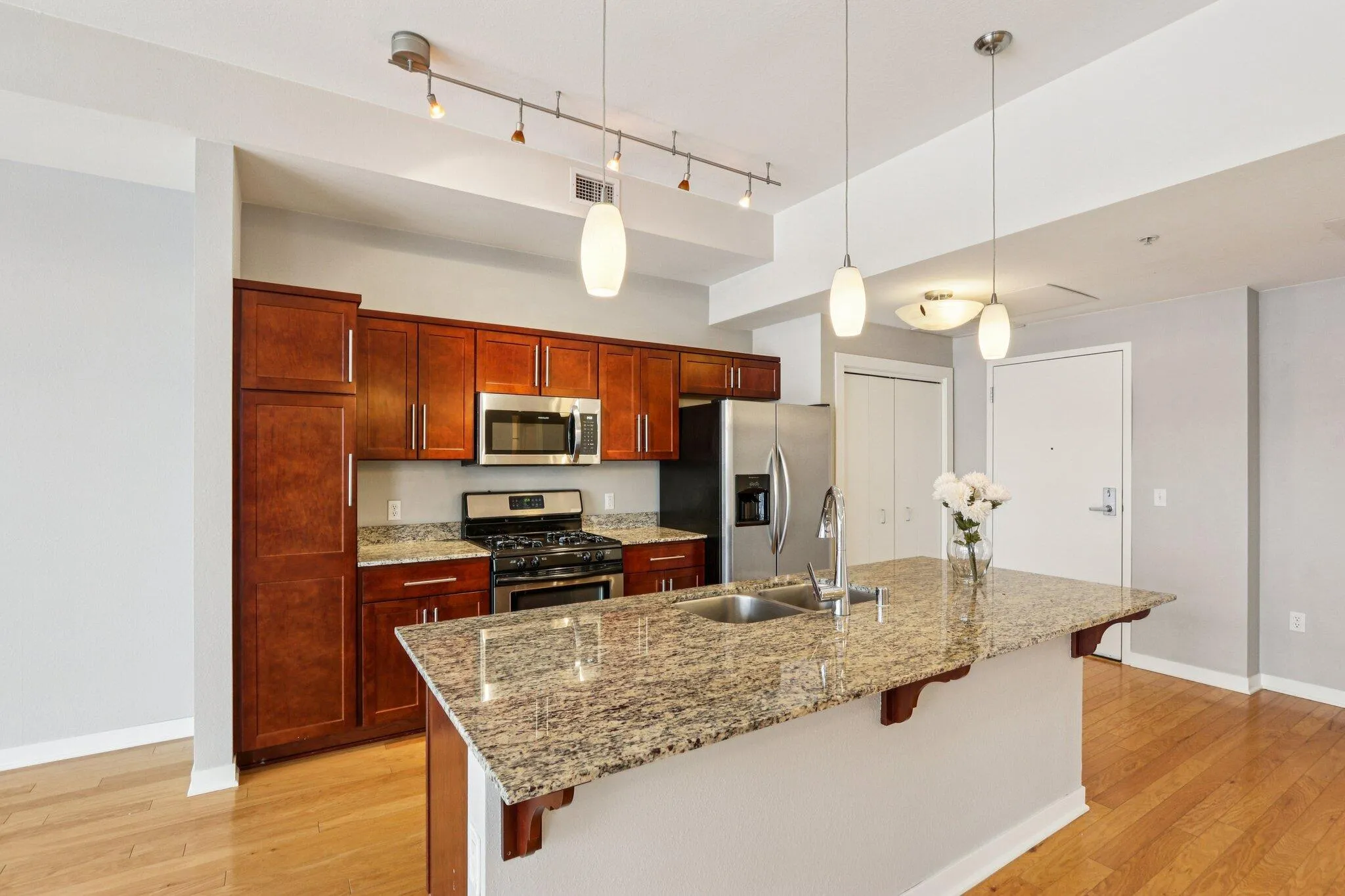 Welcome to The Point on the River! This 8th floor 1BR condo offers west-facing city views and stunning sunsets through walls of glass. Enjoy views of the Menomonee River, Clocktower, Harley-Davidson Museum, and Viaduct from your private balcony. Open-concept living features hardwood floors, granite countertops, stainless steel appliances, and a generous island. In-unit laundry included. Building amenities include concierge services, security, fitness center, theater room, and resident lounge. Public dock provides easy river access for kayaking. Prime downtown location with walkable dining, entertainment, and RiverWalk access. Includes: Internet, sewer, water/hot water, garbage. Tenant pays: electric, renter’s ins, app fee, move-in/out & cleaning fee. Add-on fees for parking, storage, pets
