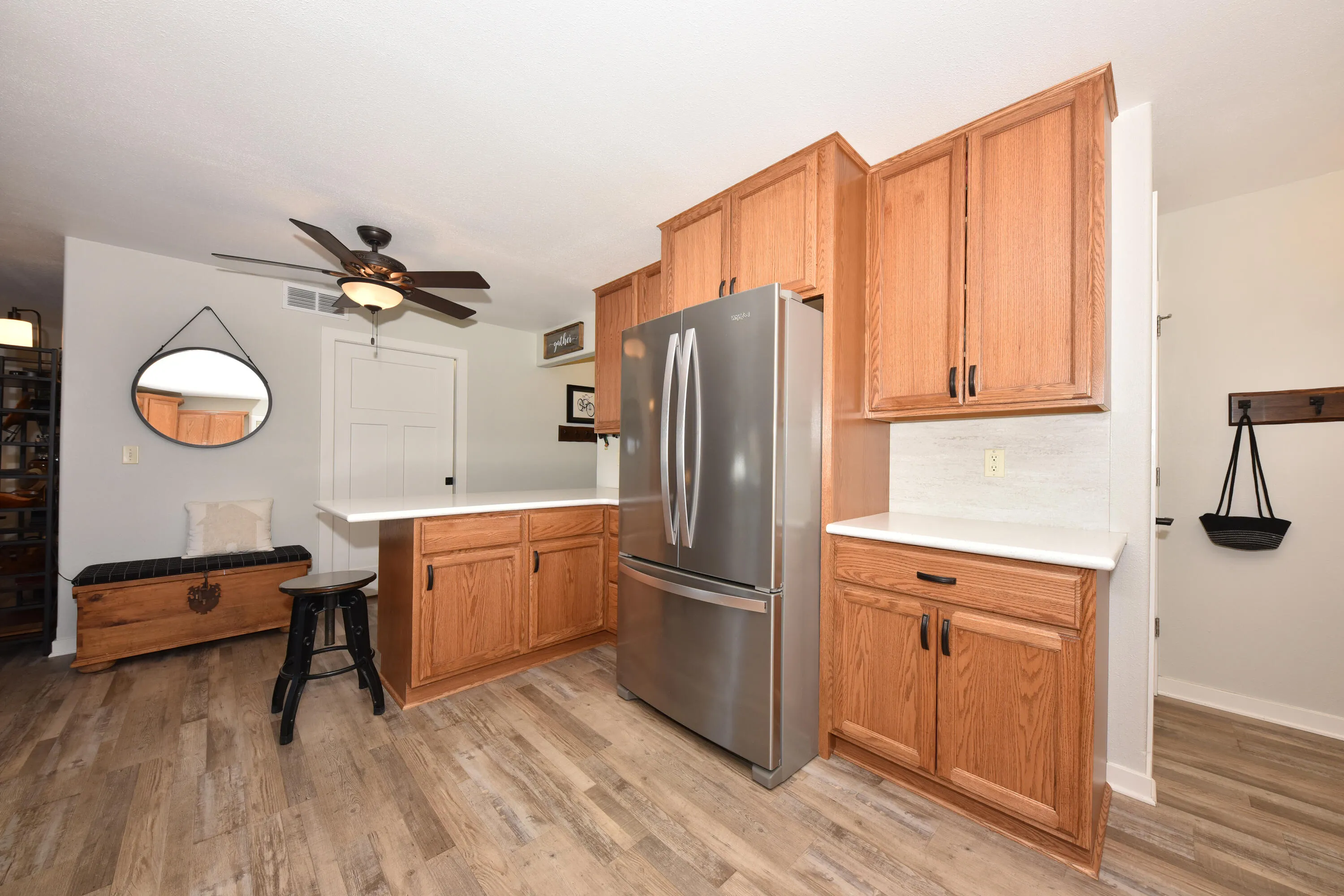 Beautifully updated condo in Slinger offers inviting kitchen with solid surface countertops, abundant cabinetry & breakfast bar. Dining room is filled with natural light from abundance of windows. Spacious living room features a cozy gas fireplace and patio doors that lead to private patio. Also on the main level is a bedroom with dual closets, full bath & laundry room. Upstairs is the large primary bedroom retreat with private full bath. Updated luxury vinyl plank flooring runs throughout the entire condo, providing a modern look and easy maintenance. Additional highlights include a 2-car attached garage and a pet-friendly policy allowing up to 2 cats (no dogs). A well maintained, move-in-ready condo with a smart layout and great storage.