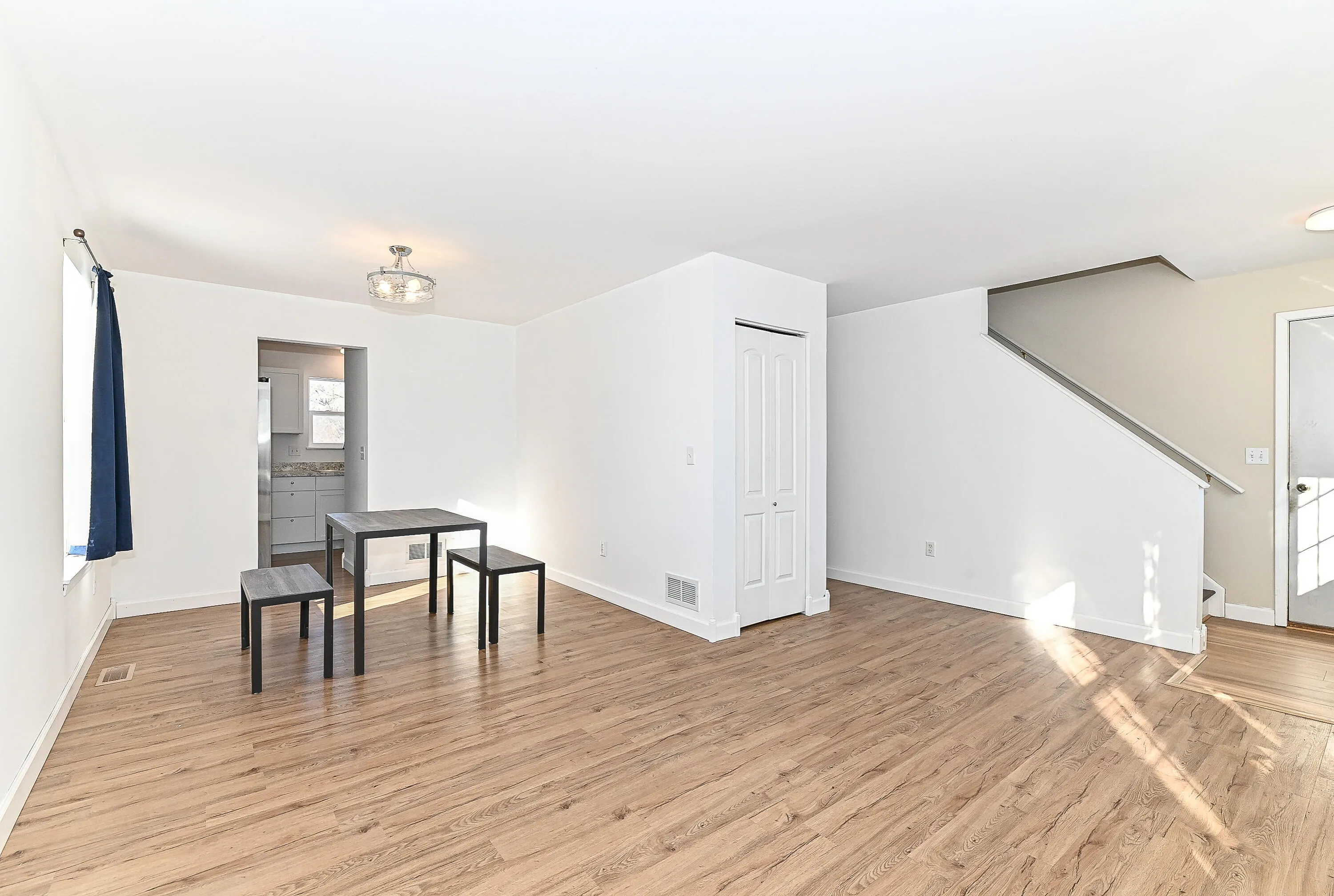 Updated home in desirable Hunters Ridge featuring 3 bedrooms and 1.5 baths. The main level offers a functional and inviting layout with a living room, family room, dining area, kitchen, half bath, and laundryall accented by beautiful newer vinyl flooring. The bright kitchen showcases white cabinets and newer light fixtures. Enjoy outdoor living on the two-tier deck. The finished basement adds extra living space with built-in shelving and is plumbed for a future third bath, plus a cement crawl space ideal for storage. Newer roof completes this move-in-ready home.
