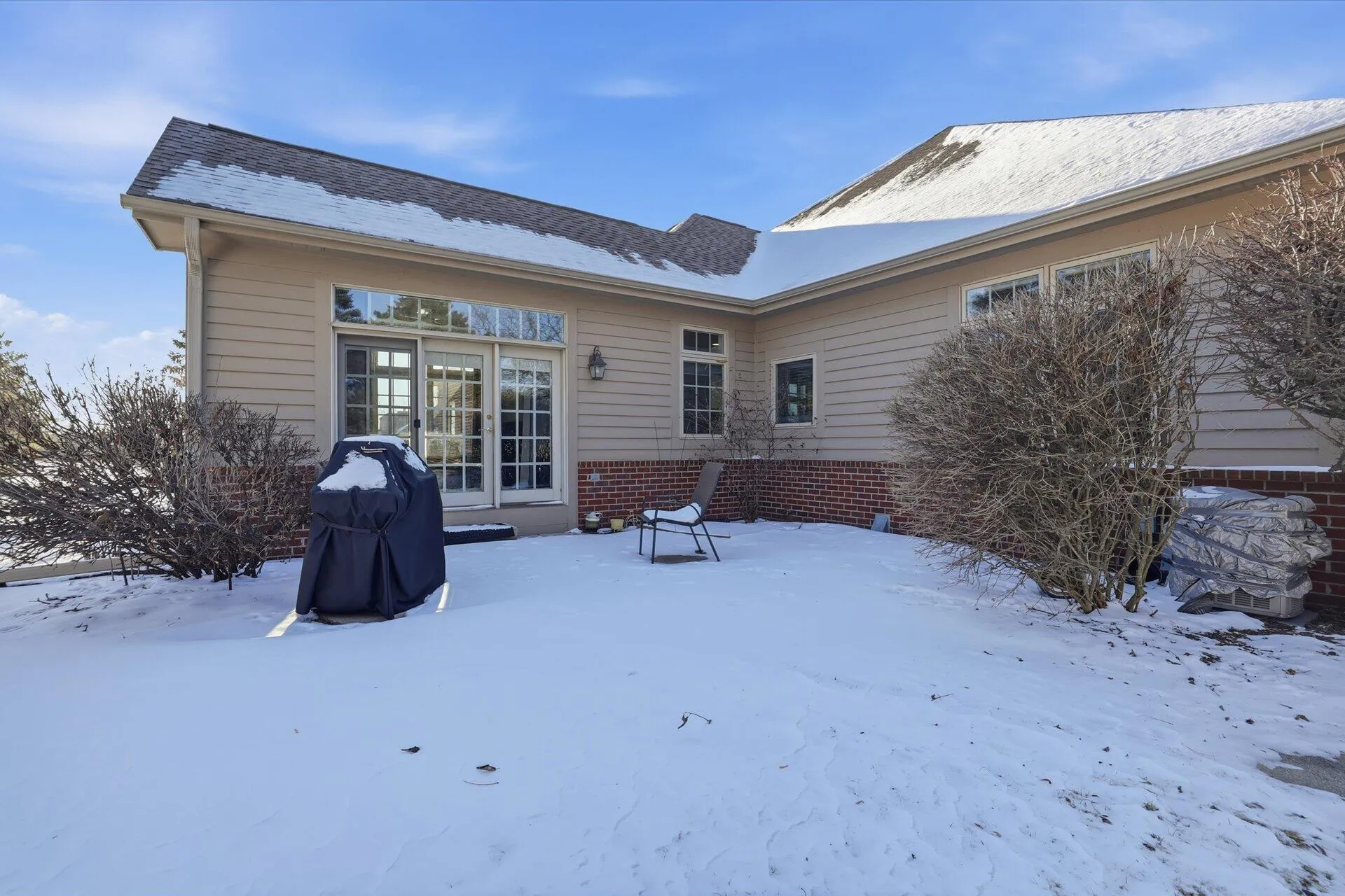 Elegant Essex Place condo offering 3,186 sq ft of refined, move-in ready living in a serene, wooded setting. Soaring ceilings enhance the great room, flowing into the sunlit dining area w/ access to 1 of 2 private patiosideal for entertaining or quiet relaxation. The crisp white kitchen feat. stainless appliances, generous eat-in area & built-in desk, while the sunroom showcases tranquil views through 3 walls of windows & opens to the 2nd patio. A main-level office w/ French doors & custom built-ins easily serves as a 4th bedroom. The 1st-floor primary suite is a true retreat w/ spa-inspired bath, excellent closet space & peaceful backyard views. Finished lower level adds an add’l bedroom, full bath, rec space & storage. A rare offering blending privacy, comfort & timeless appeal.