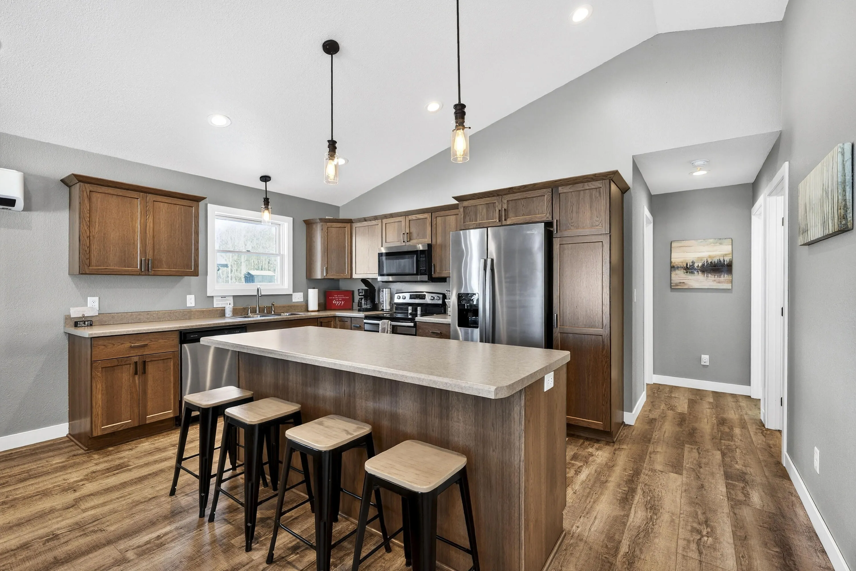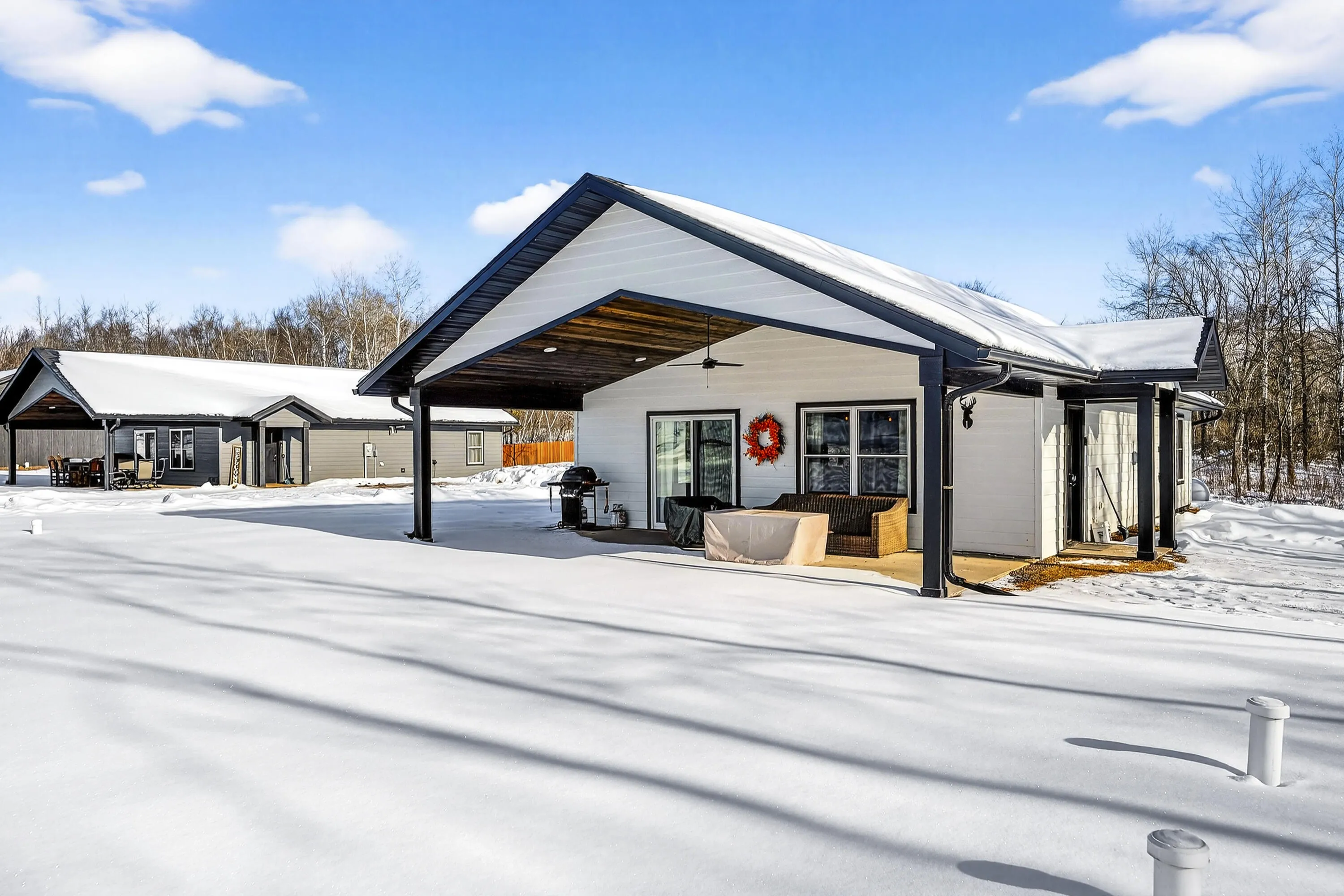 Whether you are looking for a retreat or your primary residence, look no further! Here is a newer constructed, FULLY FURNISHED modern home in Loch Lomond near Red Cedar Lake! Energy efficient with LP Smart siding, spray foam insulation & in-floor heat. Welcoming, spacious vaulted great room w/gas fireplace and a super cute covered porch area (28×12) w/vaulted tongue & grove ceiling. Owner’s have exclusive access to the newly constructed Loch Lomond Beach Club, which offers a swimming pool, a splash pad, tennis courts, fully stocked kitchen & more! Located across the street from the golf course & abundant outdoor activities! Featured unit (white exterior/black trim, hickory cabinets, white interior trim/doors & durable LVP throughout)! One owner of the LLC is a licensed agent in WI.