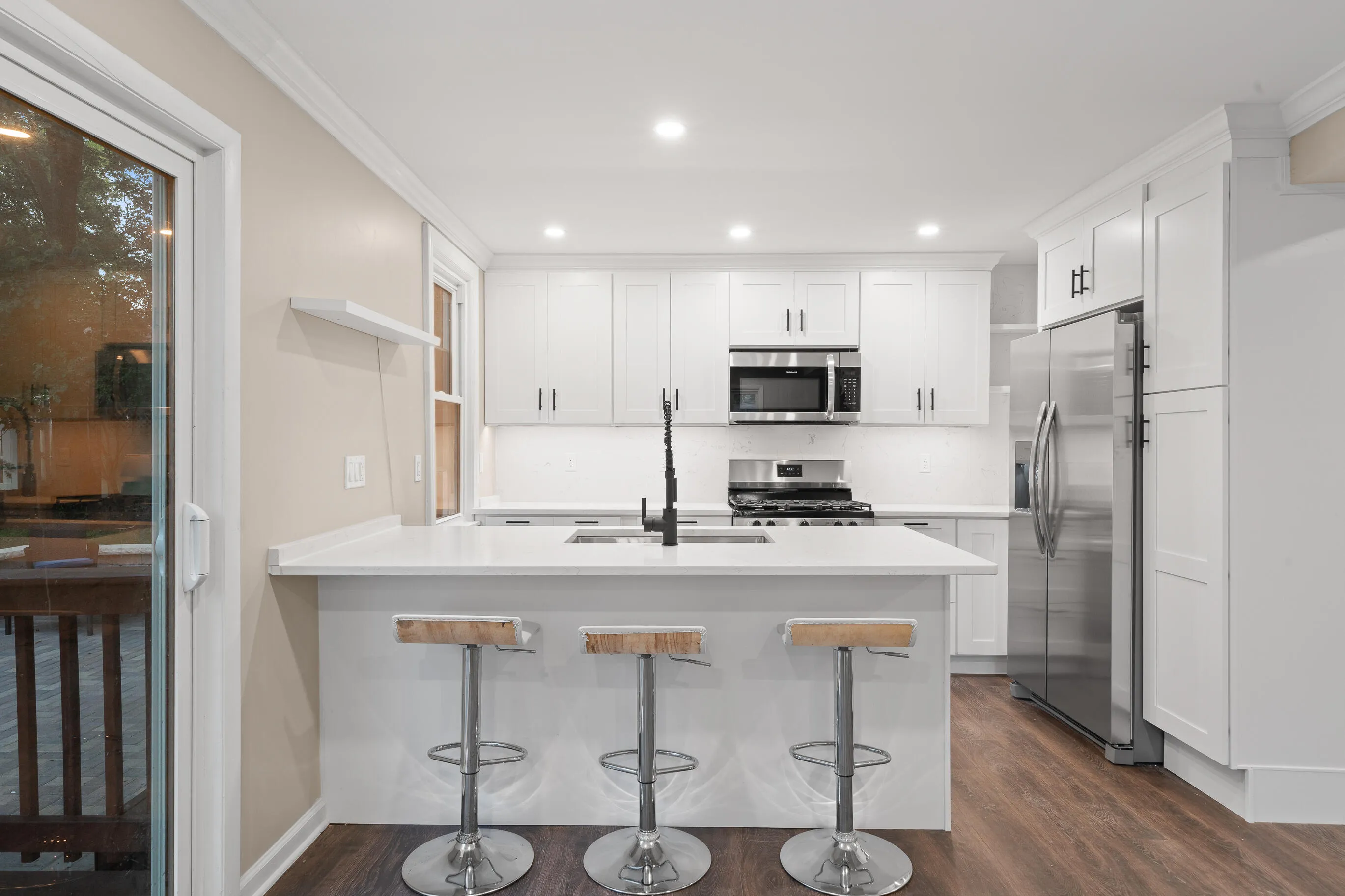 WILLIAMS BAY – 3 Bedroom, 2 full baths on EXTRA LARGE LOT IN DOWNTOWN WILLIAMS BAY. This home is newly rehabbed and turn key. It is a perfect home for a seasonal getaway, investment property or a primary residence. Open concept kitchen and great room. Primary bedroom and full bath located on the first floor. Two large bedrooms and full bath on the second level. Brand new professionally landscaped/hardscaped on an extra large lot. Newer sliding glass door and windows. There is also a shed, a deck (10×16), brand new patio (16×19) Close to Williams Bay Beach, Boat Launch , restaurants and shopping. Quick close possible.