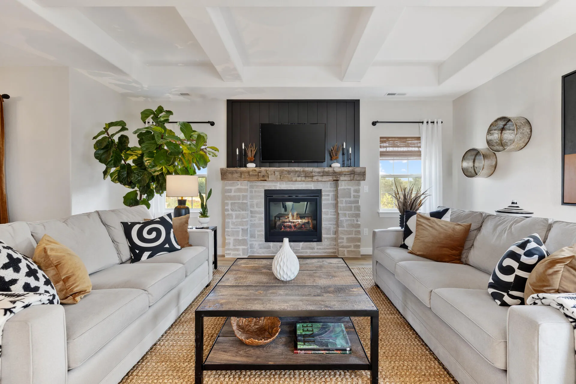 New Construction Upper Condo! 3-BR, 2-BA offers a perfect blend of comfort and style. The open-concept living area features a cozy gas fireplace, creating a warm setting for everyday living and entertaining. The chef’s kitchen includes a large island, quartz counters, walk-in pantry, and dry bar. Step onto the private deck just off the dining area for easy outdoor enjoyment. The primary suite offers a peaceful retreat with a spacious closet and private bath. Coffered and vaulted ceilings add character throughout. Photos are of a different unit with similar layout. Some upgraded are also shown. Please verify inclusions with your agent if you are purchasing. 40 minutes from Milwaukee in the highly regarded Slinger school district. Available now! Don’t miss out!