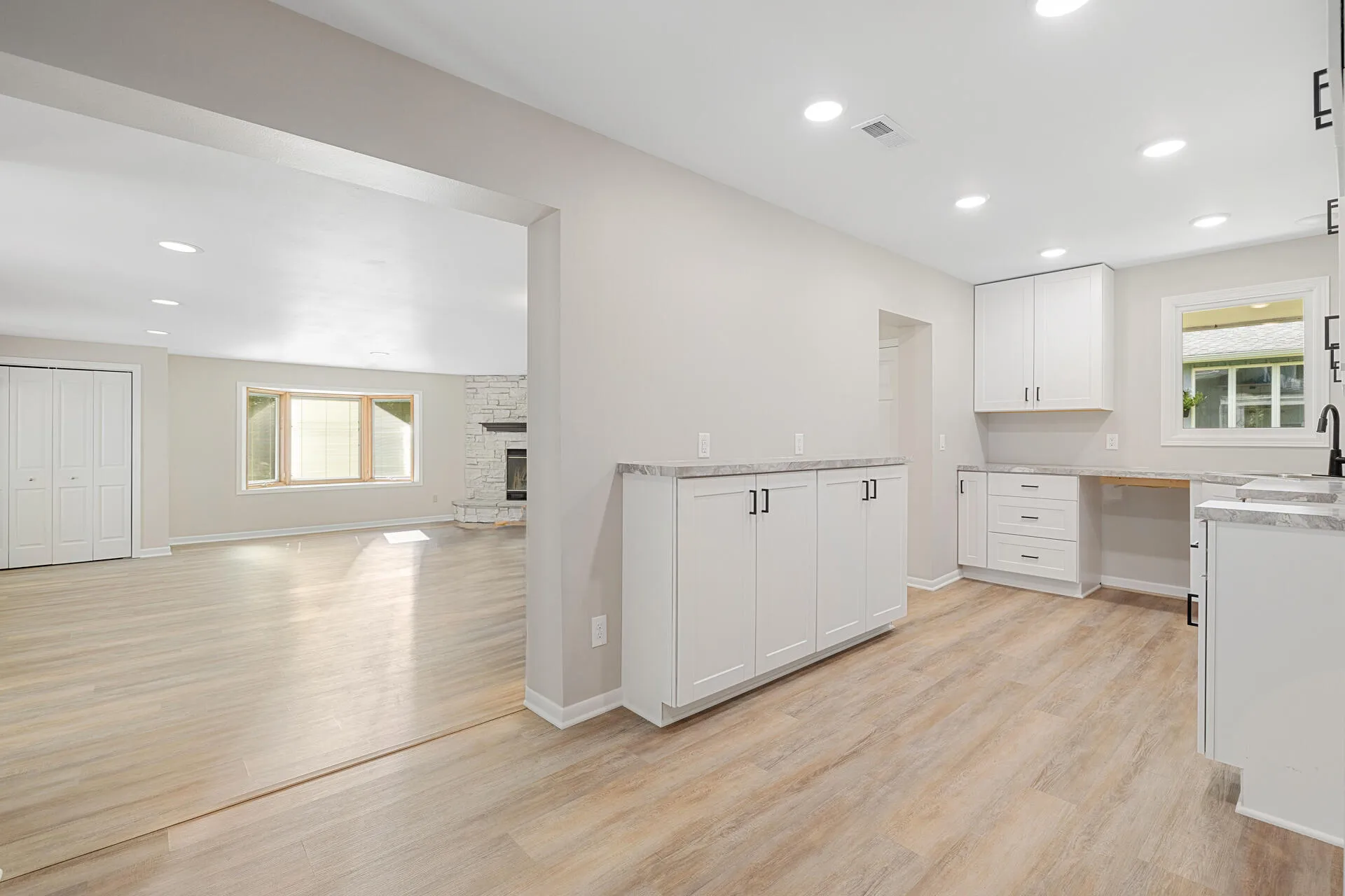 This recently updated property is ready for its new owner! Embrace the character of the bright & neutral color palette throughout this 3BR, 1.5BA home with separate GUEST HOUSE, complete with kitchenette and full bath!! Updates include new flooring & paint throughout, new cabinets & counters in both buildings. Master on main floor w/walk-in cedar closet. Huge Family Room with wood-burning fireplace for those cold winter nights. 2 bedrooms & half-bath on upper level. Just steps away, at the rear of the property, you’ll find the inviting and cozy, 500sf, guest house. Perfect for when the kids come home from college or as an in-law suite. Close proximity to Big Cedar Lake offers a nice lake view from the front of the property. Quiet neighborhood in the Slinger School District!