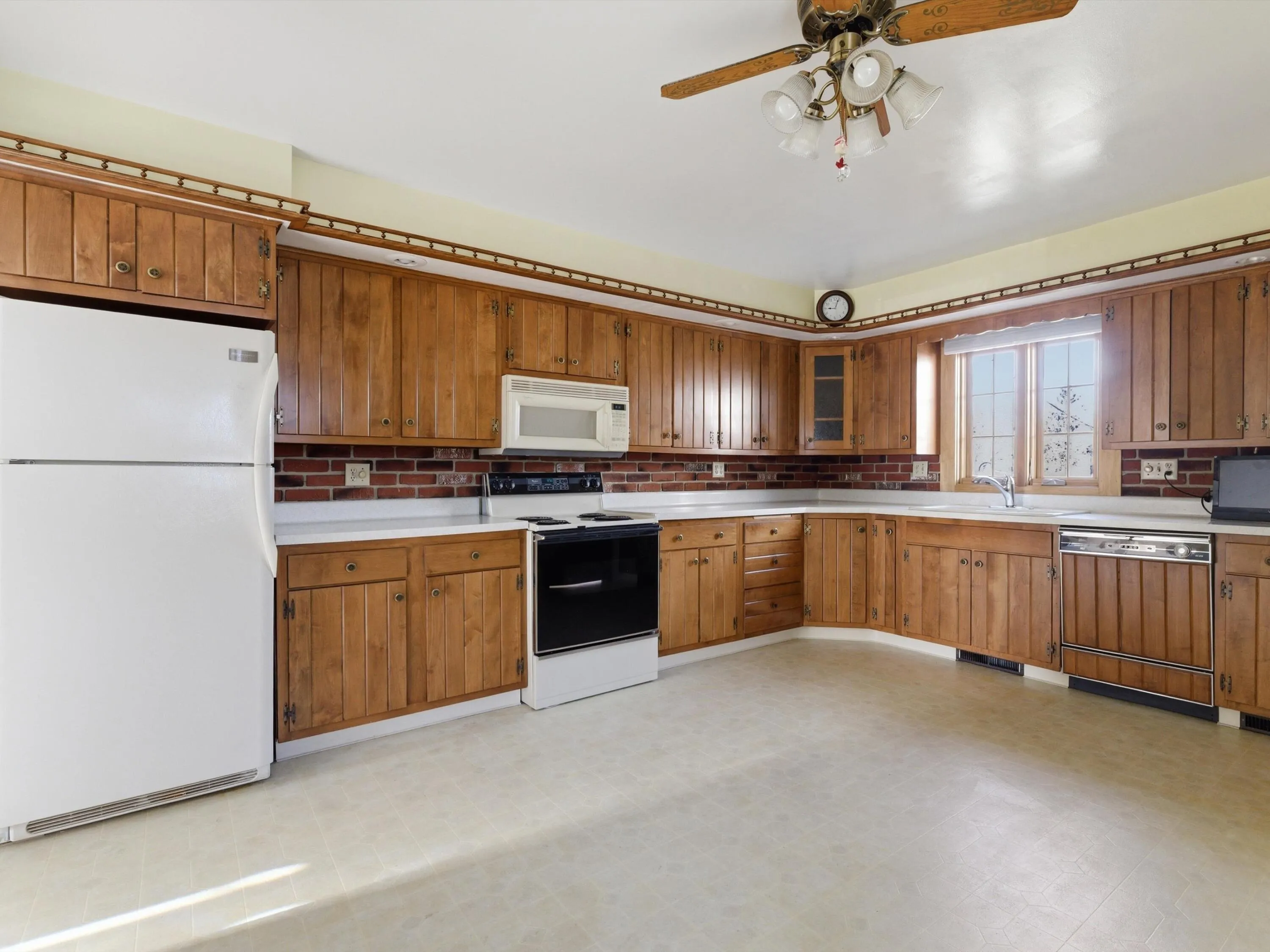 Owned and cared for by the same family for over 70 years, this classic Manitowoc ranch is ready for its next chapter. Located on a quiet circle near Franklin Elementary, the property features a tiered backyard and private back deck. Inside, the kitchen feels surprisingly spacious for a cozy ranch with a built-in side nook, room for a table, vintage dishwasher, and charming plate rail detail. The bright living room offers a large front window, and the main level includes three bedrooms and a full bath. Downstairs you’ll find a finished rec room with a wood burner, vintage furniture that can stay if it’s your vibe, plus laundry, mechanicals, a half bath, and bonus room. Detached garage with drain. Solid home with original charm ready for your personal touches.