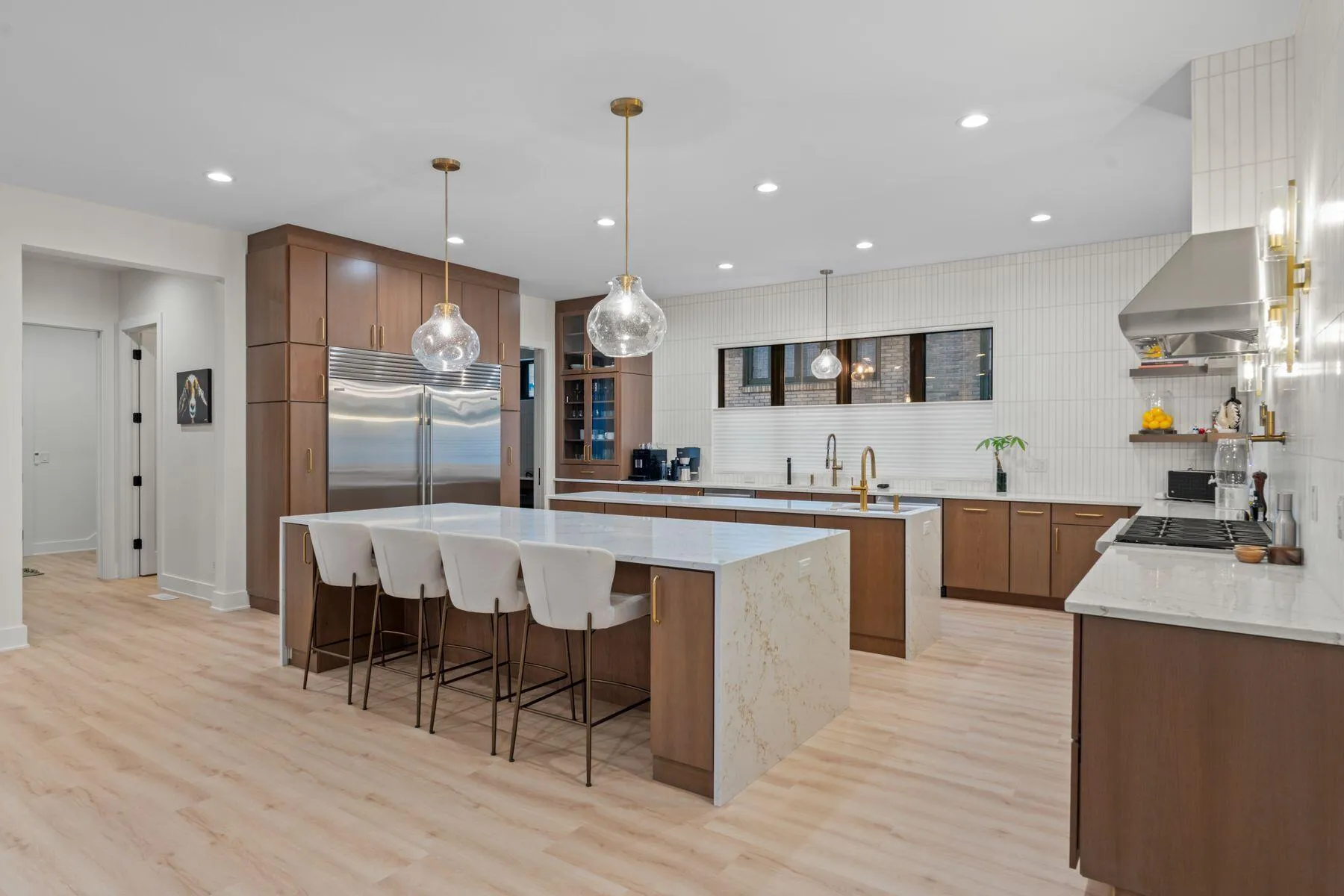 A remarkable opportunity to own a newly constructed contemporary home in the heart of Milwaukee’s Upper East Side with unmatched walkability, a spectacular kitchen, and designer finishes throughout. This residence is rich in style and amenities over four spacious levels, offering over 8,000 square feet of luxury living. Enjoy five spacious bedrooms, four with ensuite baths, including the primary with wet room bathroom and a third-floor guest suite. The phenomenal, enclosed rooftop terrace with hot tub, cold plunge, wood-burning fireplace, TV lounge, dining area, and kitchenette is ideal for year-round living and entertaining. The residence also includes a first-floor office, lower-level rec room/media room, gym, sauna, and an oversized attached three-car garage. Virtual staging.