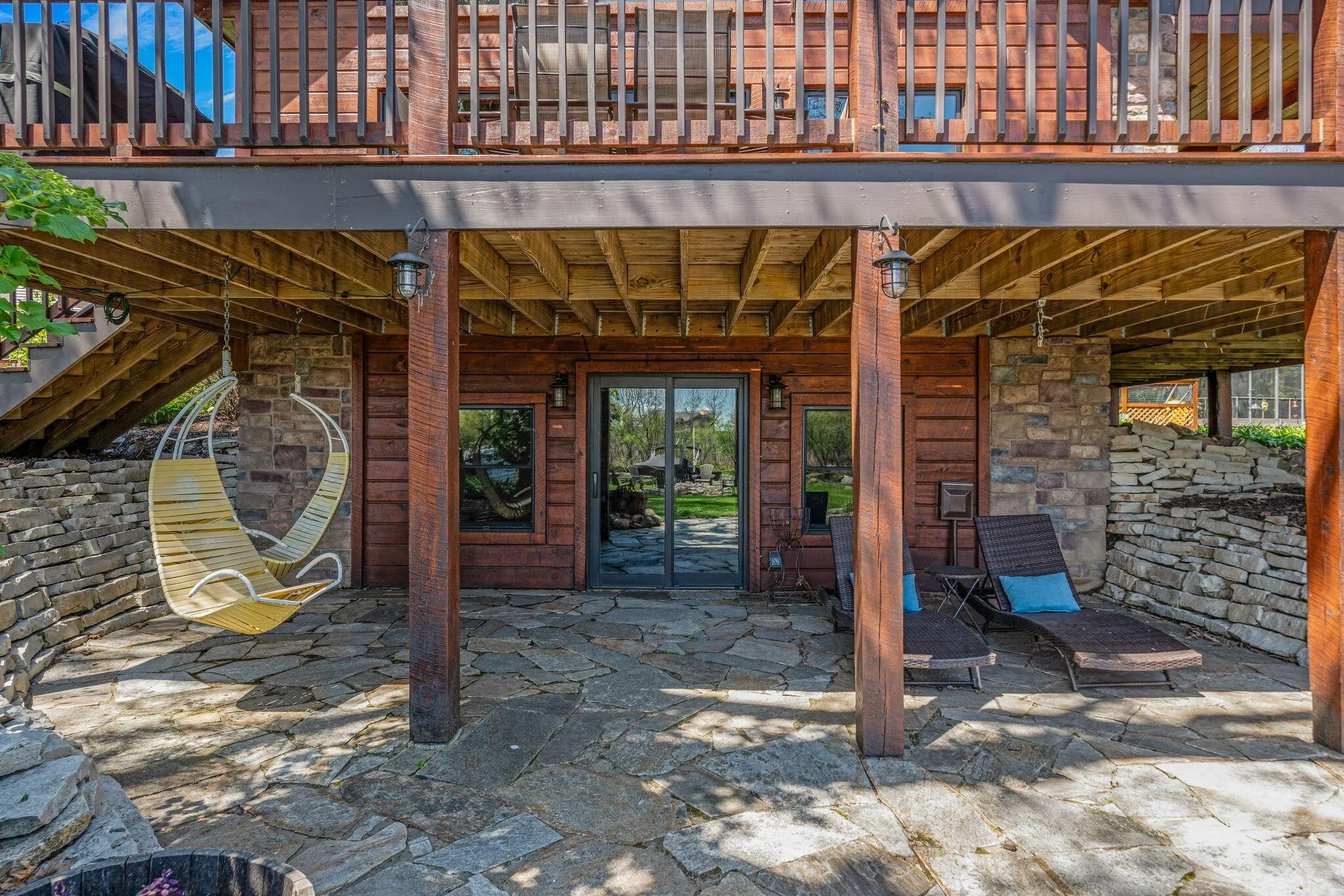 Your ”Northwoods Oasis” awaits, just steps from Downtown Delafield! Quality abounds in this custom built modern log home situated on 108′ of peaceful channel frontage on Nagawicka Lake! Breathtaking lake views, framed by a full wall of great room windows. Amish, hand-sawn live edge trim frames all of the interior doors & windows & solid, hand-sawn wood lines the walls. GR area is highlighted by tongue & groove wood ceilings that carry into the upstairs loft, perfect for a guest space or a home office those WFH days. Main floor primary suite w/ 2nd ensuite upstairs. Outdoor living areas perfect for summer parties! Sip on margaritas at the pier bar or cozy up in front of the outdoor FP w/ a cold one & a Brewer game on TV. Why travel up north? Your year round staycation home is here!!