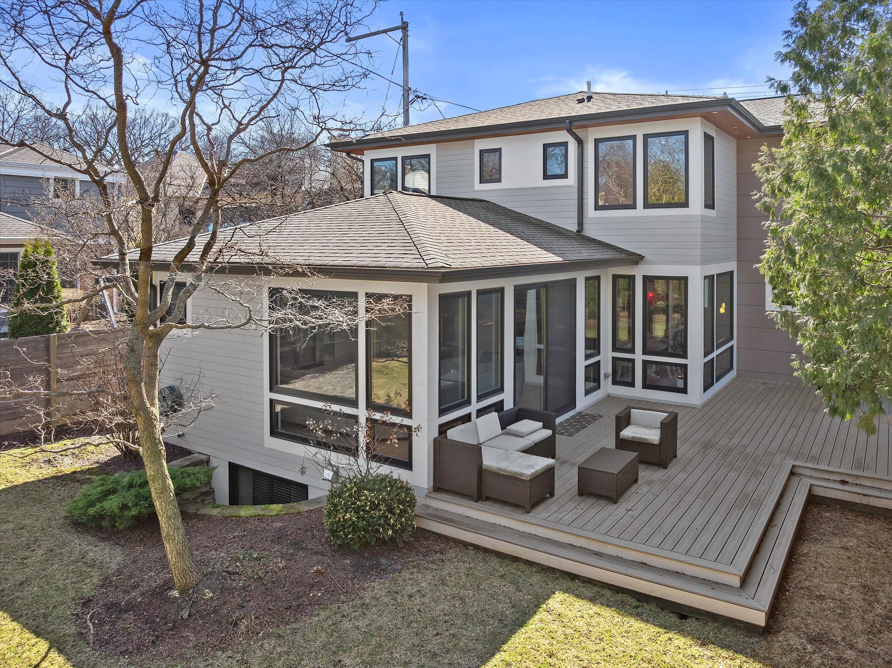 Sleek Expansive Modern 8 Year Old NEW CONSTRUCTION with dramatic entryway floating glass and wood staircase with tall ceilings throughout and sightlines to bright open spacious floor plan. Contemporary kitchen design. large island with prep sink, backsplash, state of the art appliance package. 1st floor den, laundry, mudroom and essential attached garage. Exceptional windows, sliding glass doors to private fenced yard. Upper primary w/sitting area and LARGE walk-in closet and 3 additional bedrooms and 2 baths. Stunning lower level features large family/media room, bar area, and lower ensuite with egress window. 2 storage rooms. Great move-in ready property with high quality mechanicals, attention to detail, and easy walk to the Klode Park and the Village of Whitefish Bay.