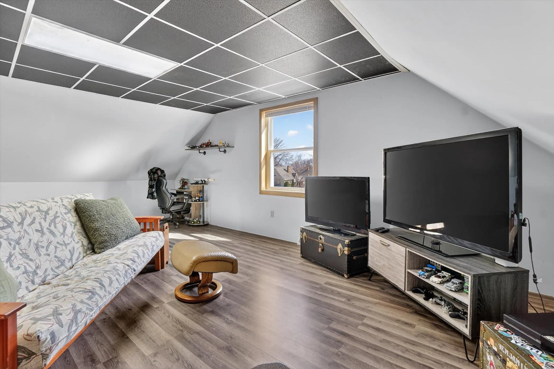 Charming brick turn of the century home featuring 4 bedrooms and a versatile layout. Bright living room and formal dining area with beautifully refinished hardwood floors create a warm and inviting space. Main level offers two bedrooms with new carpet, plus a flexible third bedroom perfect for a home office or den. Spacious kitchen with updated appliances, ample counter space, and plenty of storage. Upstairs includes a large rec room or family space, an additional bedroom, and extra storage. Blending timeless character with functional updates, this home offers space, flexibility, and value.