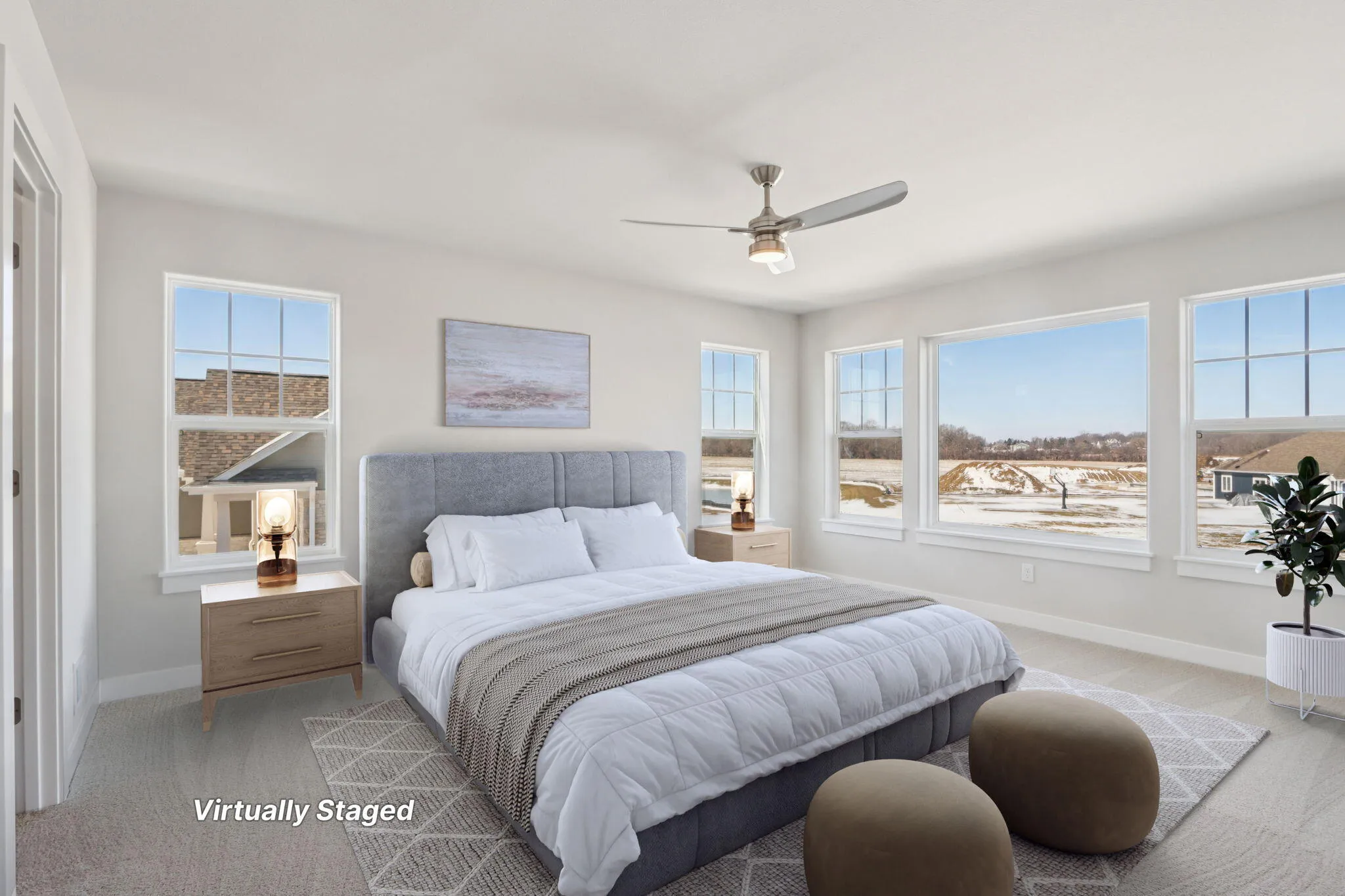 Norwood w/ sun-filled great room & 16’x12′ sunroom. This open-concept home features a gas fireplace w/ stacked stone surround & transom windows in GR. Designer kitchen w/ stained cabinets, quartz countertops, tile backsplash, island w/ flush snack bar, & GE appliances; microwave, dishwasher, slide-in gas range, chimney hood, & built-in look French door refrigerator. Walk-in pantry w/ melamine shelving. First-floor office w/ double swing glass doors; laundry/mudroom w/ cabinets, folding table, & built-in lockers. Primary suite w/ two walk-in closets, double vanity, separate commode, & 4’x5′ tiled shower w/ wall-to-wall shelf & bench. Additional: walk-in closets in bedrooms 2 & 3, James Hardie siding, extended 3-car garage, basement bath rough-in, 2×6 construction & builder warranty incl.
