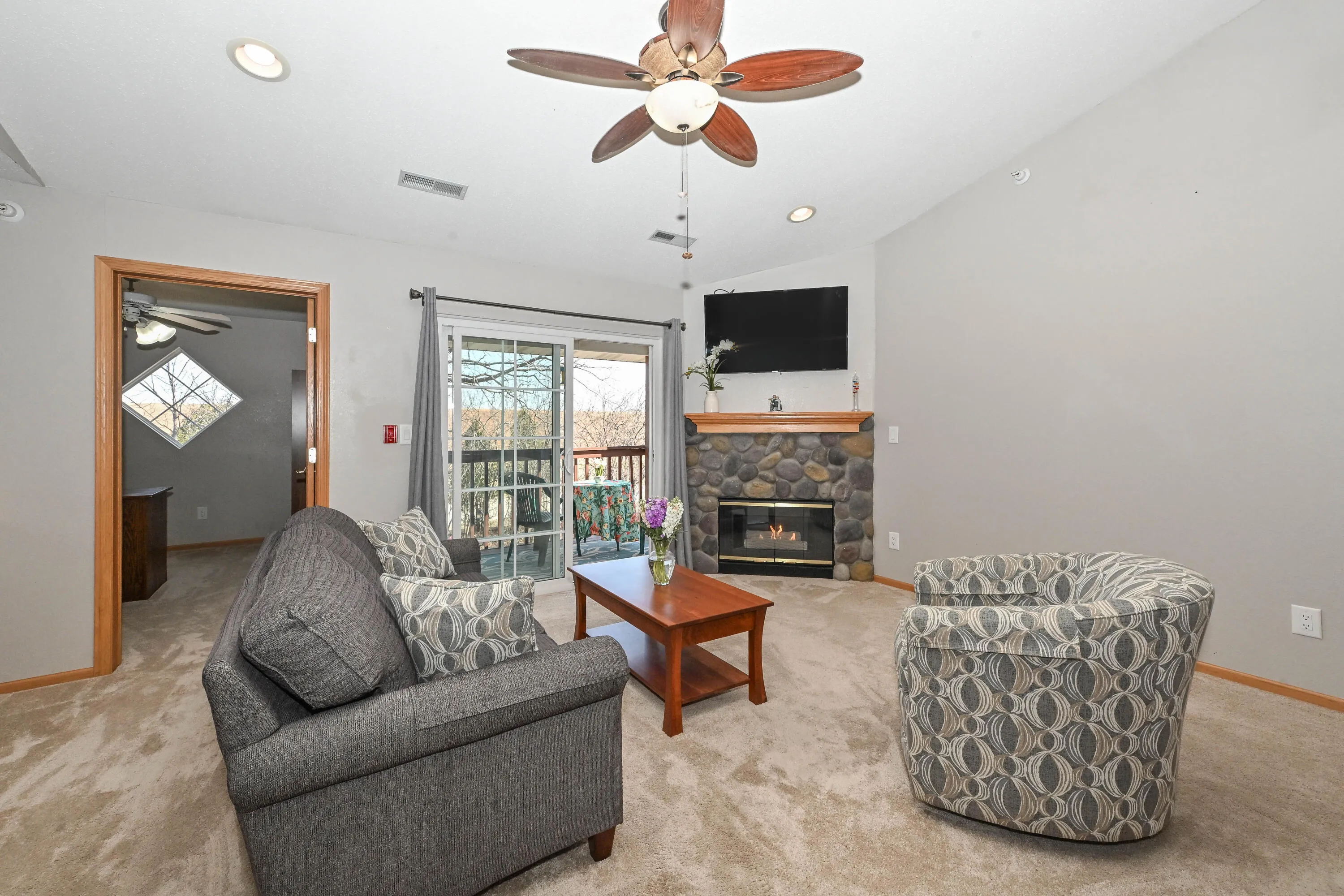 Welcome home to this charming and well-kept condo in a wonderful area of Oak Creek. This property offers a perfect blend of comfort, convenience, and tranquility. When you enter inside you will find plenty of natural light and an open living space, making it ideal for both relaxation and entertainment. The well designed layout features a spacious living room that flows seamlessly into the dining area and kitchen providing both warmth and functionality. Additionally, this condo has a walk-in closet and newly updated bathrooms. After a long day you can relax on your private porch off of the living room to enjoy the beautiful views of nature. Set up a showing today to see this lovely gem of a condo! 2 bedrooms virtually staged.