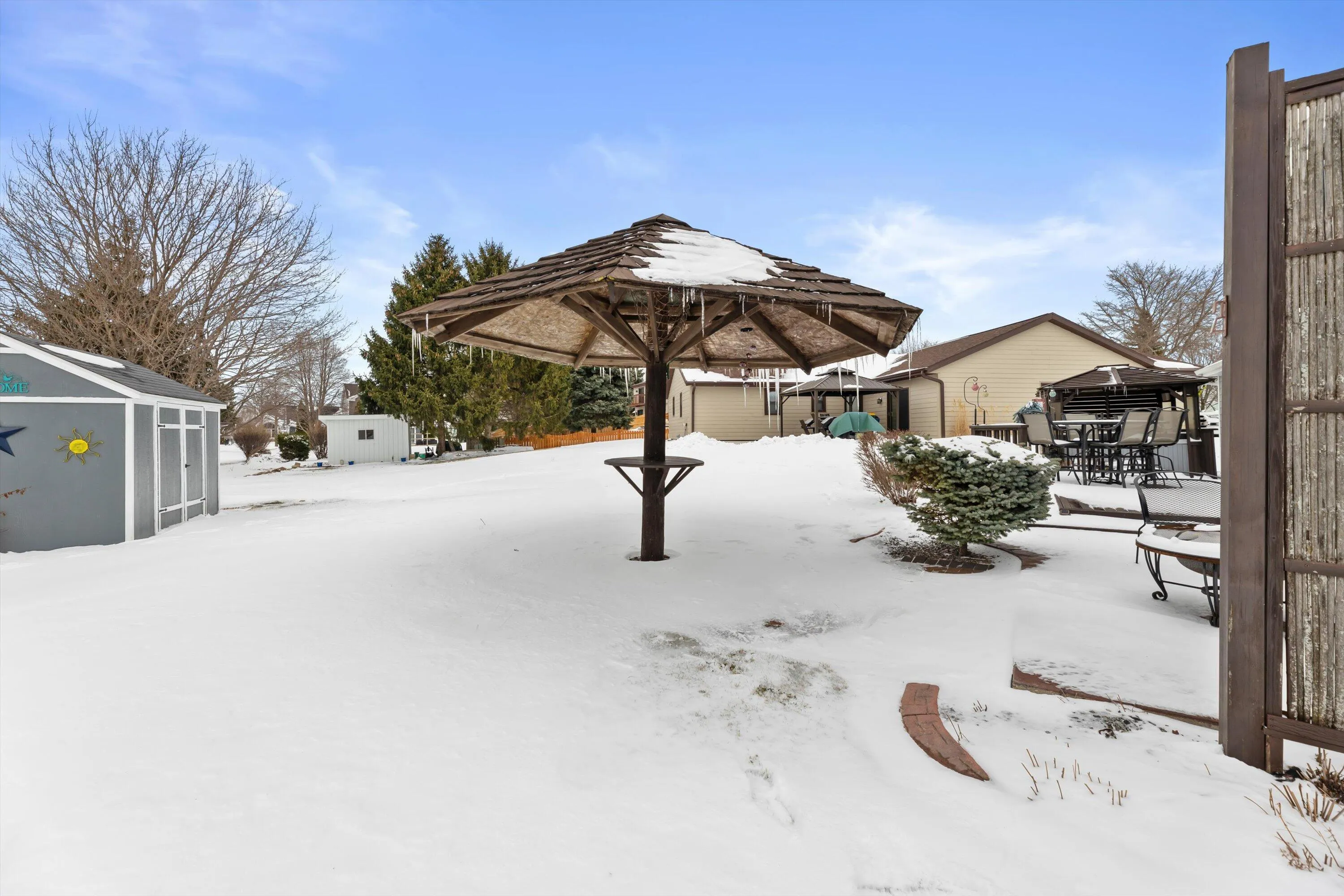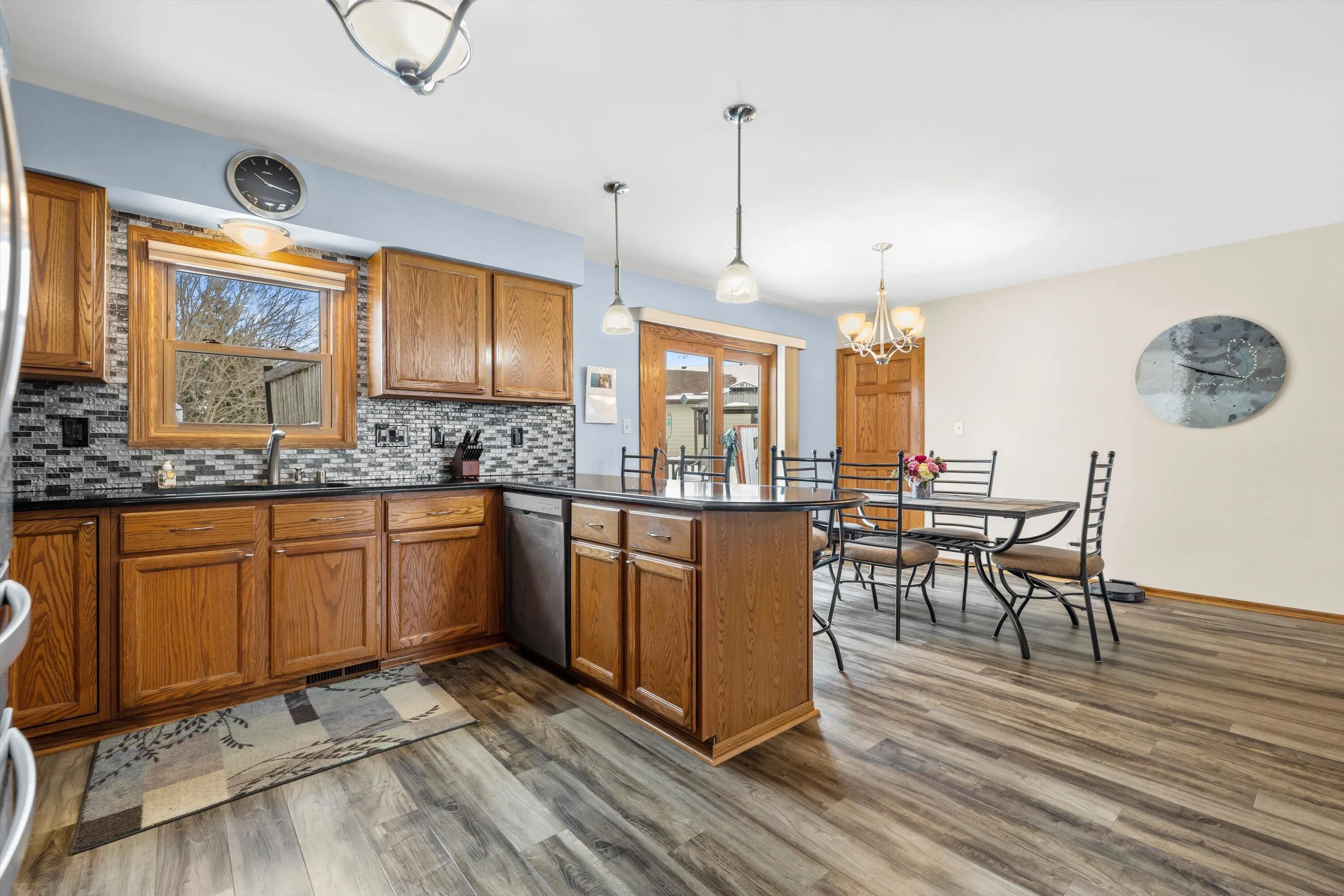 Welcome home to this stunning, fully updated 3-bedroom, 2-bath beauty in Oak Creek! Enjoy the everyday convenience of Riverton Meadows Park just steps across the street – perfect for morning walks, playtime, or unwinding outdoors. The exterior shines with a new roof and LP siding (2024), plus newer windows and patio doors. Inside, you’ll love the renovated kitchen with stainless steel appliances and beautifully updated bathrooms, including a heated floor in the primary suite. Updated LVP flooring, modern lighting, and a finished basement with bar and bonus space make entertaining easy. Step outside to your own backyard retreat with a hot tub and palapa. Extra-deep 2.5 car garage with epoxy floor and newer mechanicals complete this move-in ready home!
