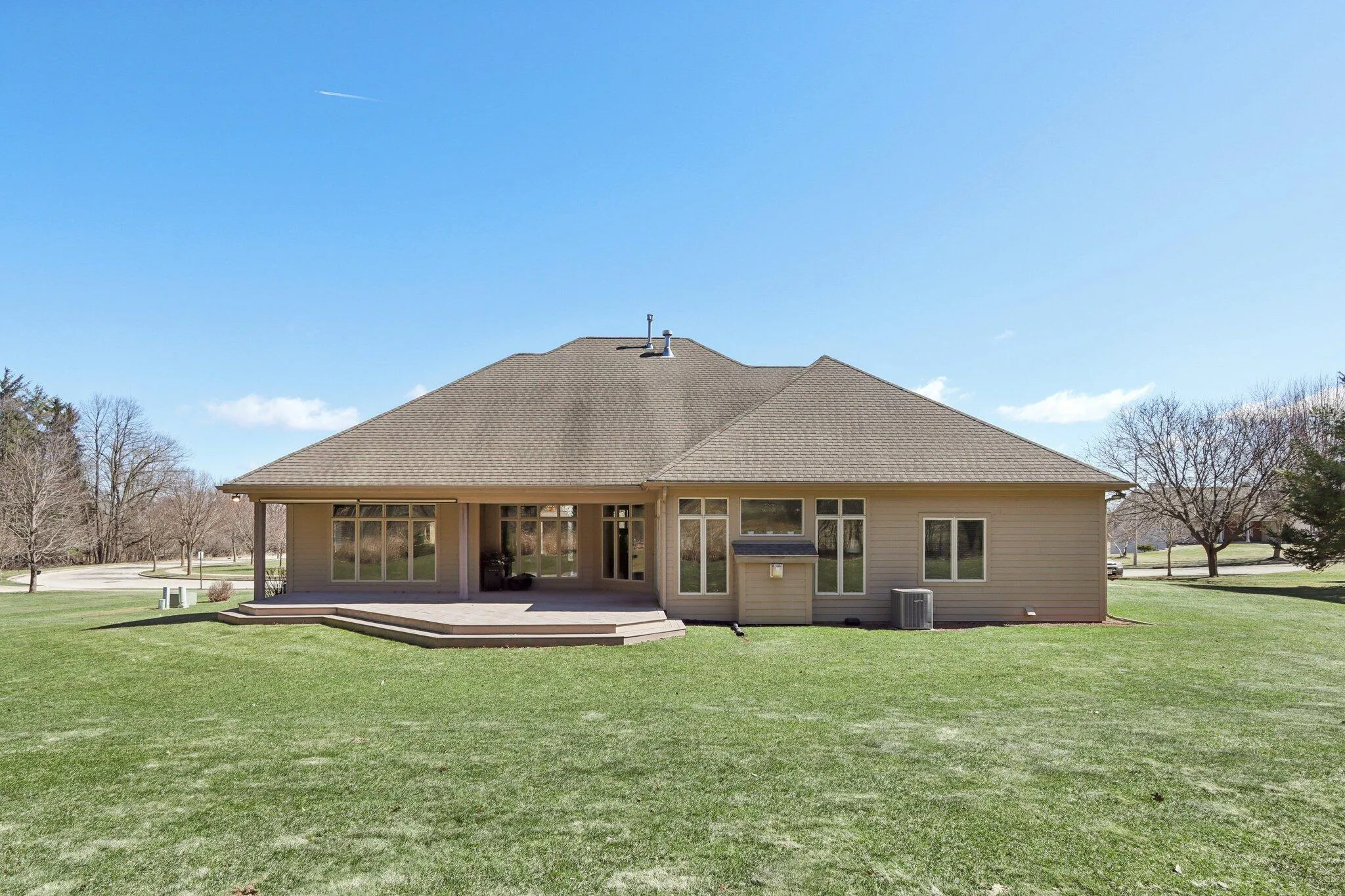 Bright and open 4BR, 2.5BA ranch with desirable split-bedroom layout! Welcoming foyer leads to formal dining room with columns and a private home office. Vaulted ceilings and abundant natural light highlight the great room with gas fireplace, flowing into the dinette and kitchen–perfect for entertaining. Spacious primary suite features jetted tub, walk-in shower and dual sinks. Second gas fireplace adds warmth and charm. Unfinished lower level with egress windows offers future expansion. Enjoy a covered deck with peaceful wooded views–perfect for relaxing!