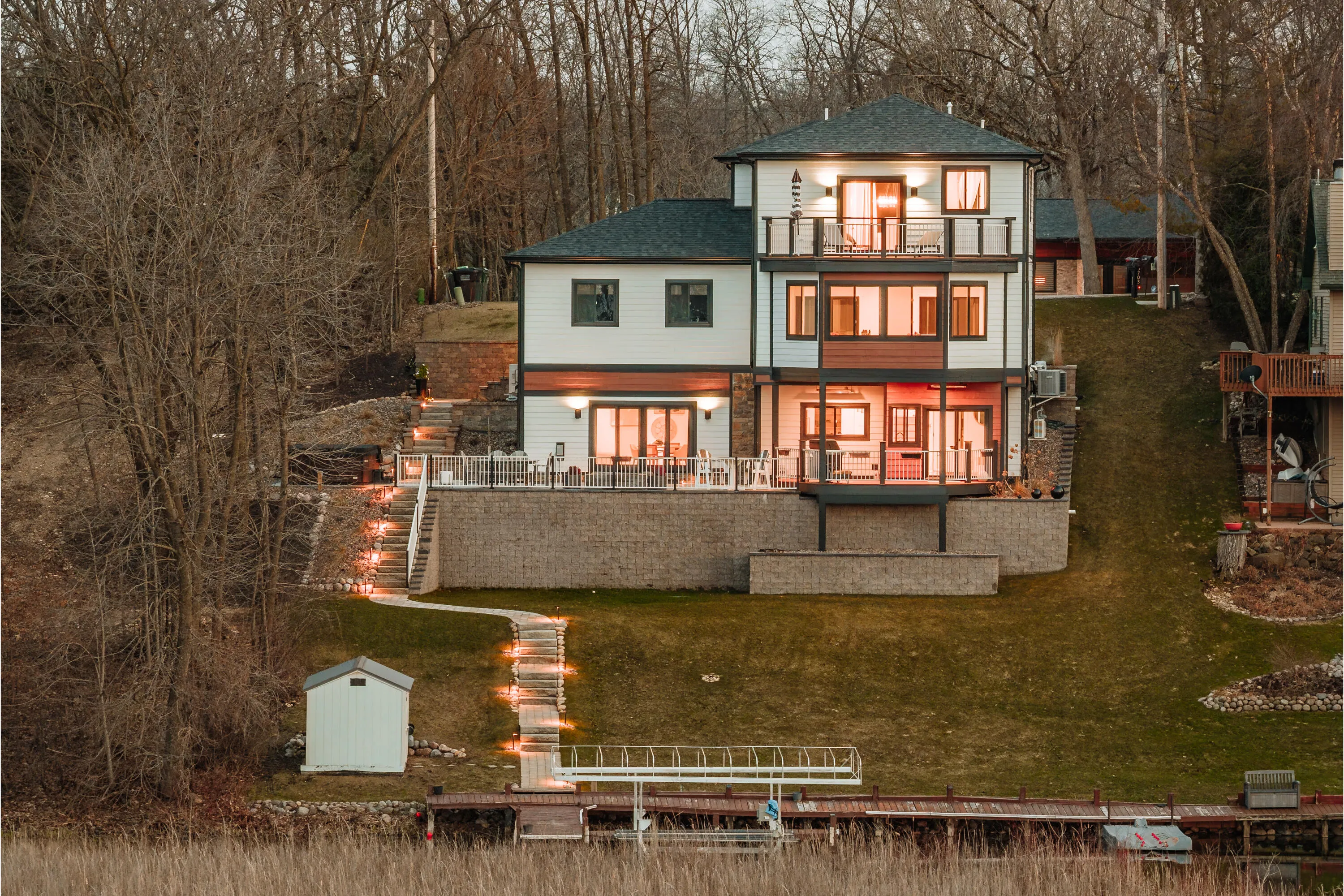 A rare Lauderdale Lakes opportunity. Custom built for 2024 occupancy, this turnkey waterfront home offers 81 feet of frontage, peaceful water views with no homes across, and approximately 3,300 square feet of beautifully designed living space. Featuring 5-bedroom flexibility, 3 full baths, and laundry on each level, this home blends modern comfort with elevated lake living. The open-concept layout showcases high-end finishes, natural wood accents, a spacious primary suite with private balcony, and exceptional indoor-outdoor entertaining spaces. Enjoy a large custom patio with gas fireplace and hot tub, heated driveway, heated 2.5-car garage, custom steps to the permanent pier, shed by the water, and 2 boat slips. A rare opportunity to enjoy turnkey waterfront living on Lauderdale Lakes.